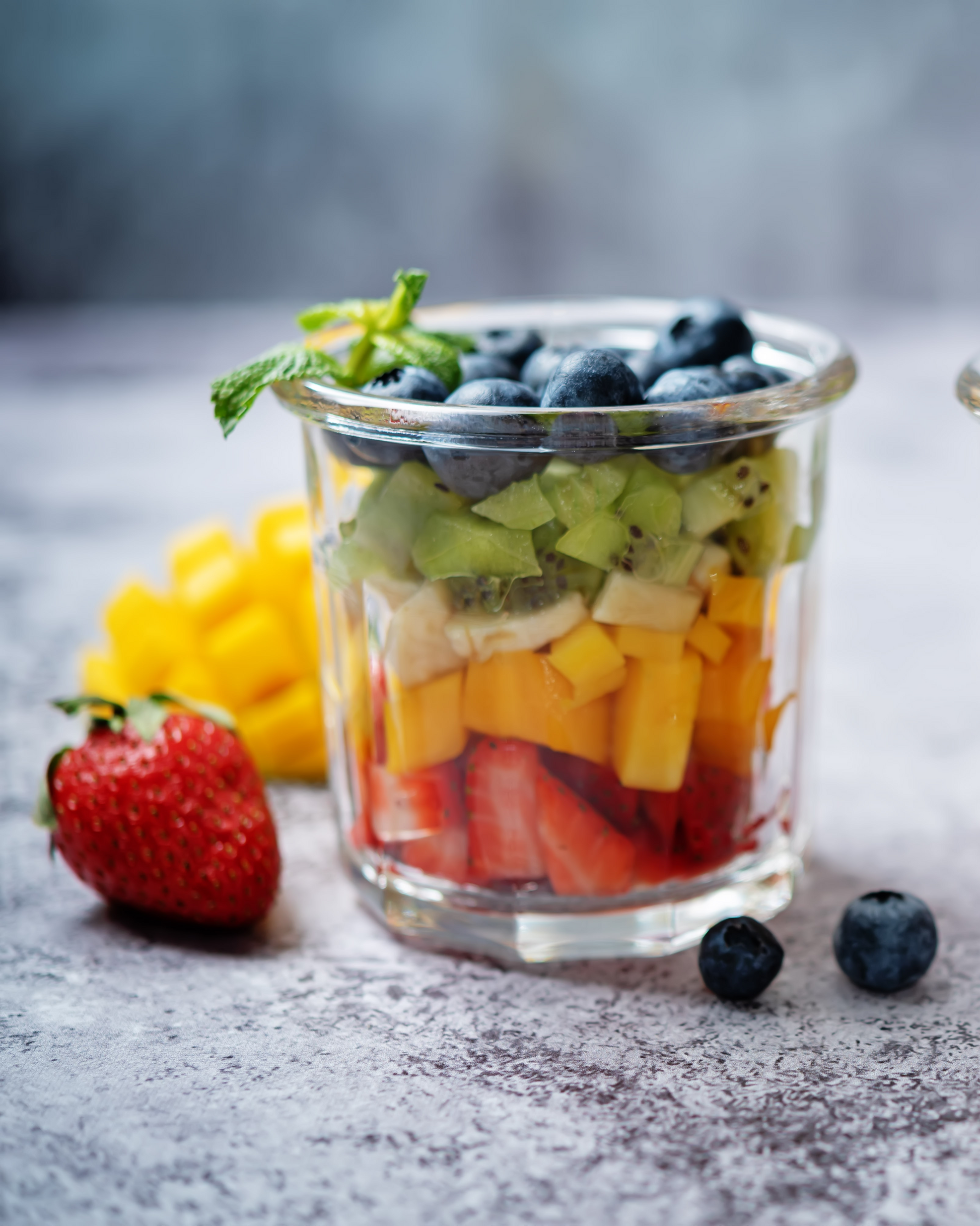 - Éplucher la banane et la couper en rondelles. Ajouter au saladier.