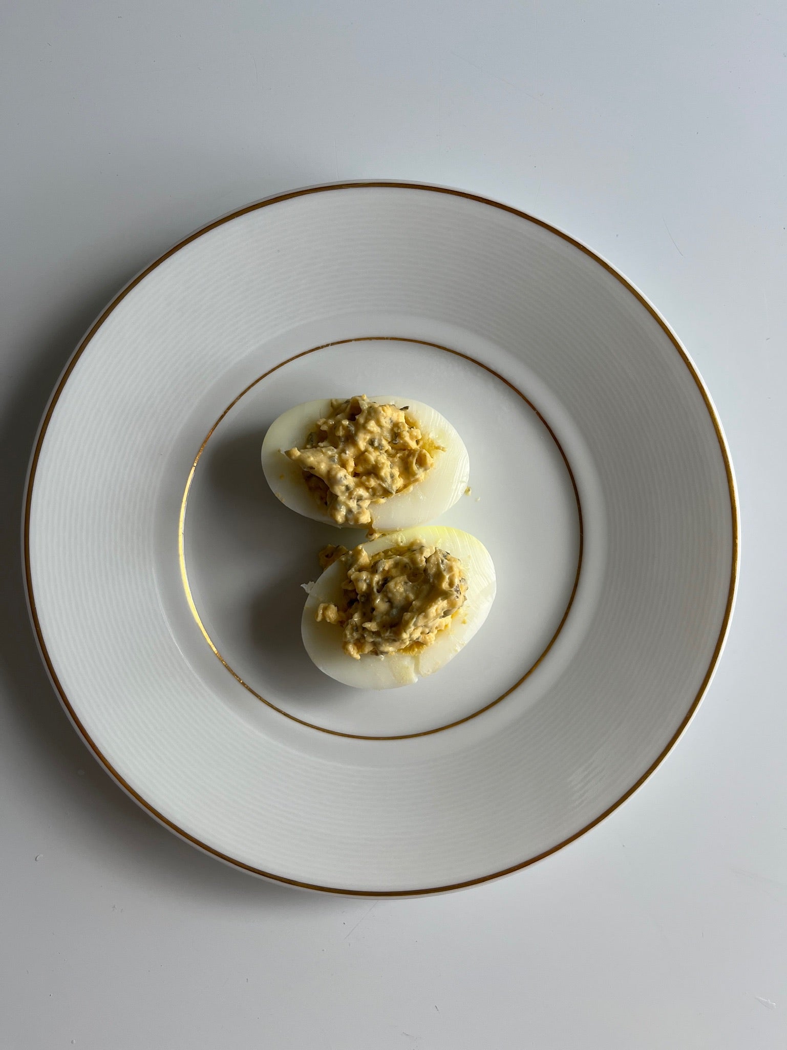 Arrange the boiled eggs on a plate . Serve e z fresh , as an aperitif or as a starter .