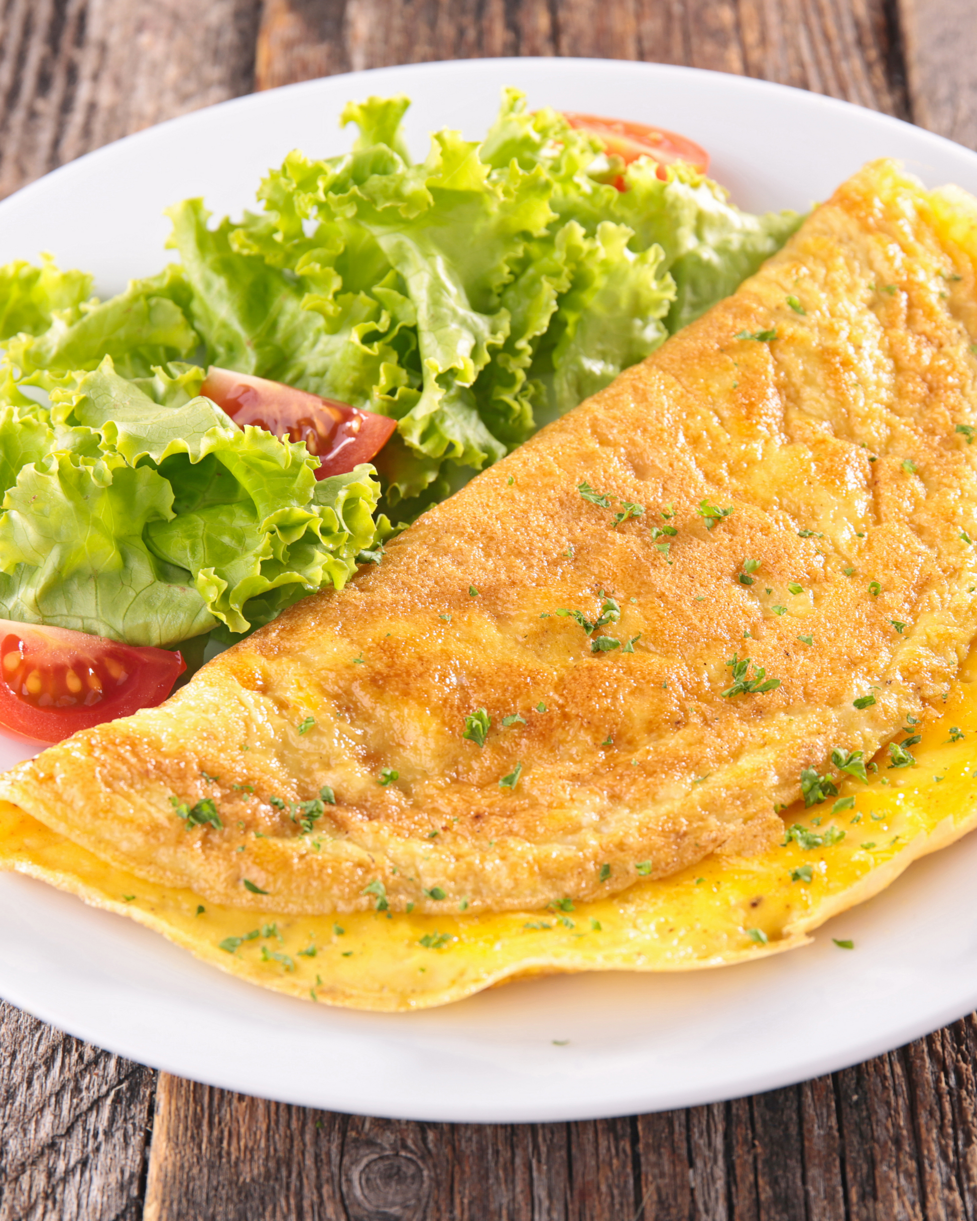 - En fonction des plaisir, plier l’omelette en deux lorsque qu’elle est baveuse ou bien prise et c’est prêt.